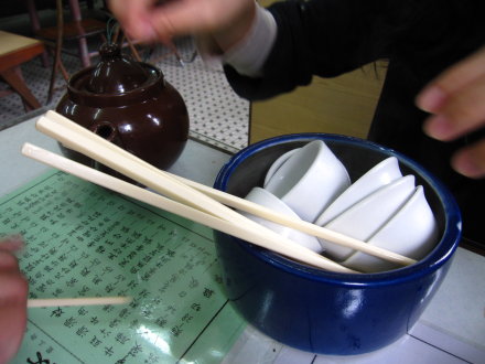 一開始服務生先送上放在滾燙熱水裡的杯筷,燙過後使用。
