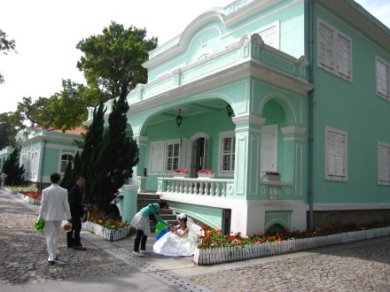 昨天看到好幾台禮車,今天又看到新娘子拍婚紗,朝氣蓬勃的澳門。